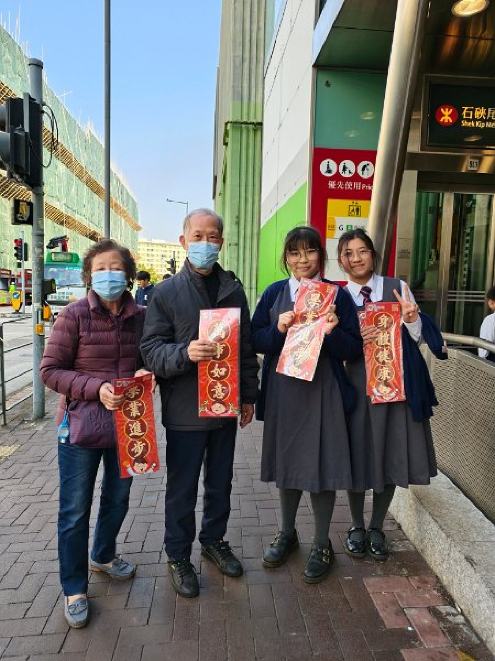 新春將至,為表我們對各街坊表達敬意,本校社會事務委員會主辦新年派揮春義工活動,活動於二零二五年一日廿日下午舉行,中一同學送上新年揮春送給本區內的居民。此活動也發揮學生服務社會的精神,使同學能建立自信心,令人生更健康積極。
